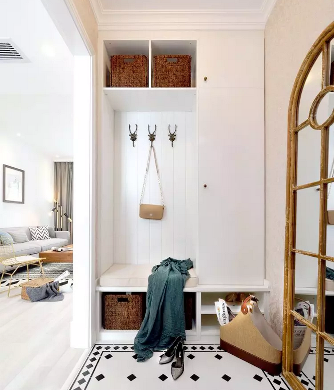 那么家里沒有玄關(guān)的戶型,要怎么補(bǔ)救?這個(gè)要分兩種情況,如果進(jìn)門空間比較緊湊,那就想方法放個(gè)鞋柜,實(shí)現(xiàn)收納功能,如果進(jìn)門空間充足,就可以設(shè)置一個(gè)隔斷,實(shí)現(xiàn)玄關(guān)區(qū)的獨(dú)立。
