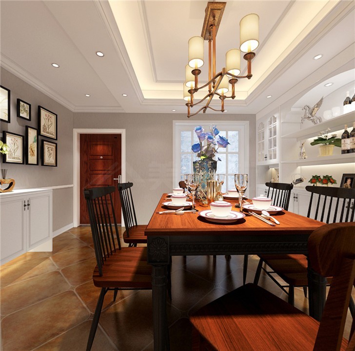 3、餐廳色彩搭配也要注重整體感。墻面可用中間色調,天花板色調則淺,以增加穩(wěn)重感。在不同的時間、季節(jié)以及心理狀態(tài)下,人們對色彩的感受會有不同的感覺。這時可利用燈光作為輔助手段來調節(jié)室內色彩氣氛,以達到利于飲食和愉悅身心的目的。