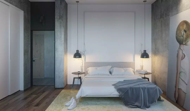 由于面積有限,很多吊燈,容易給人壓抑的感覺,影響睡眠。不設(shè)置主燈,在臥室用落地燈、主燈、壁燈不同的燈具和顏色組合,則可以在一個狹小的空間內(nèi)組合出不同層次的空間,無論是功能還是視覺上都會非常豐富。
