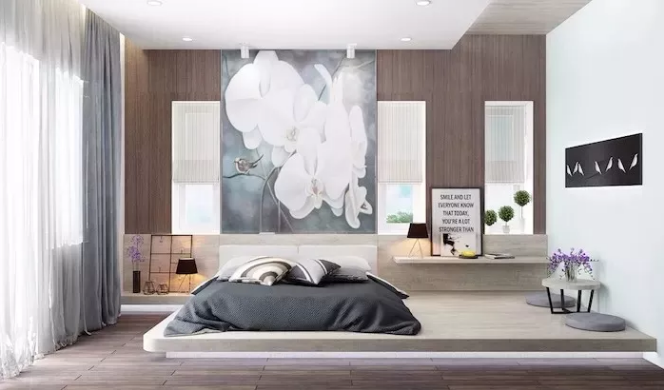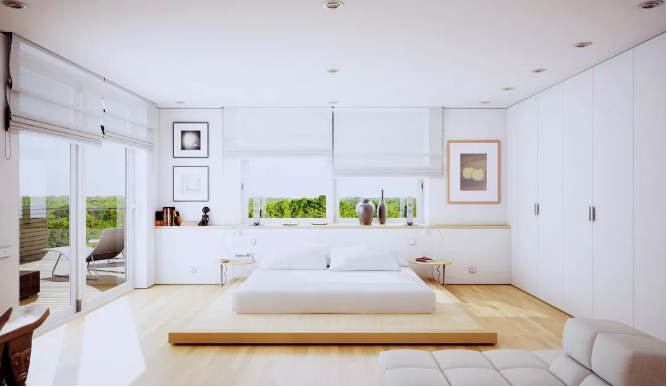 設(shè)置地臺(tái)可以降低居室重心,增強(qiáng)居住者心理上的穩(wěn)定感和安全感,有利于滿足人們對(duì)于臥室溫馨、舒適的需求。
