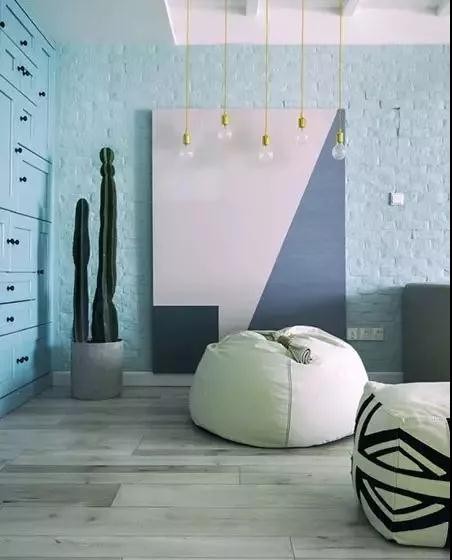 介于藍(lán)色和綠色之間的粉藍(lán)和粉綠是最容易營(yíng)造自然清新的空間氛圍,明度相對(duì)溫和,也是非常適合做背景墻的一種色系。