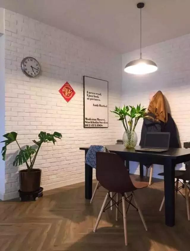 白色文化磚+木地板+木質(zhì)餐桌,自然流暢。