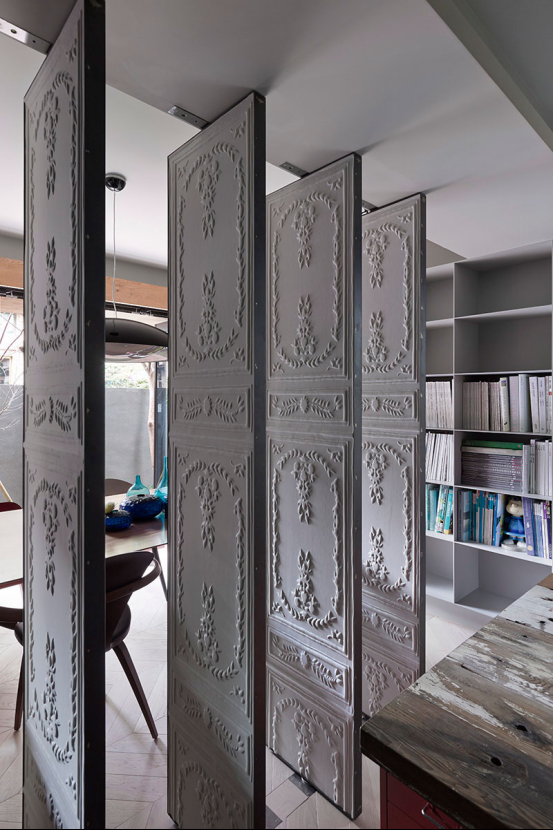 你以為這邊是墻嗎?那你肯定錯(cuò)了,其實(shí)整個(gè)屋子都是屏風(fēng)的設(shè)計(jì)。只要一觸動(dòng)開關(guān),就可以輕松將整個(gè)屋子鏈接在一起。