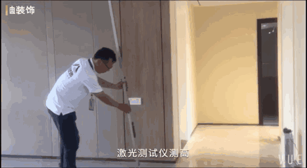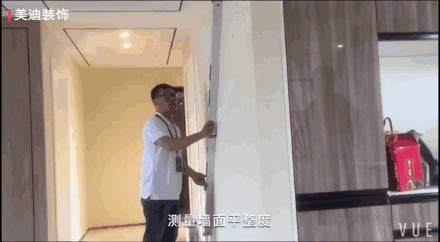美迪監(jiān)理鐘玉林正在進(jìn)行墻面垂直平整度檢查,他說(shuō)墻角偏差與墻面垂直平整度這兩項(xiàng)指標(biāo)除了能體現(xiàn)房子墻面的外觀美感,還能檢查出墻面的結(jié)構(gòu)是否有問(wèn)題。