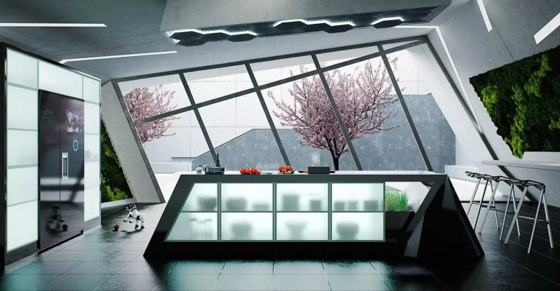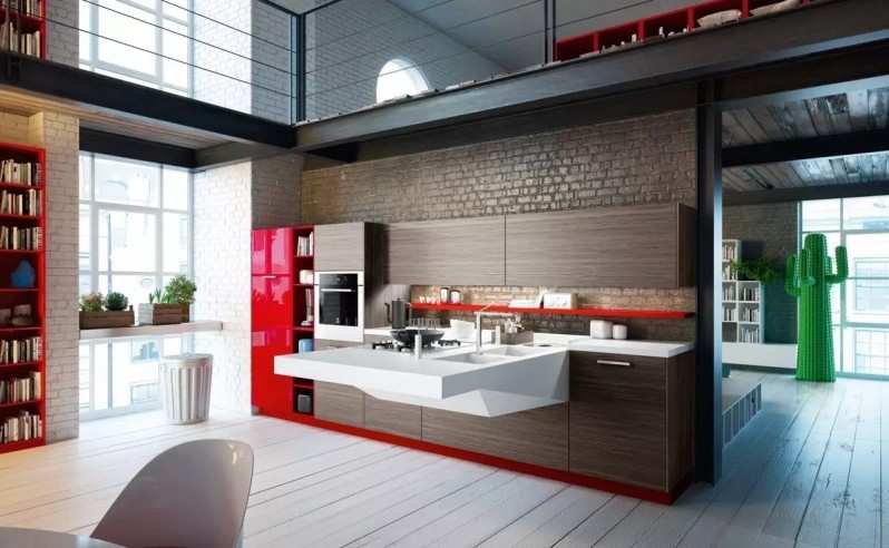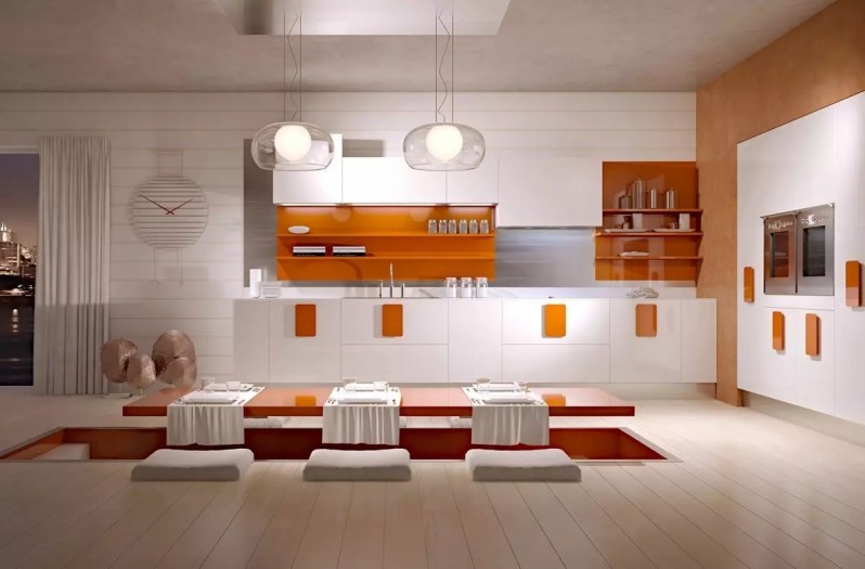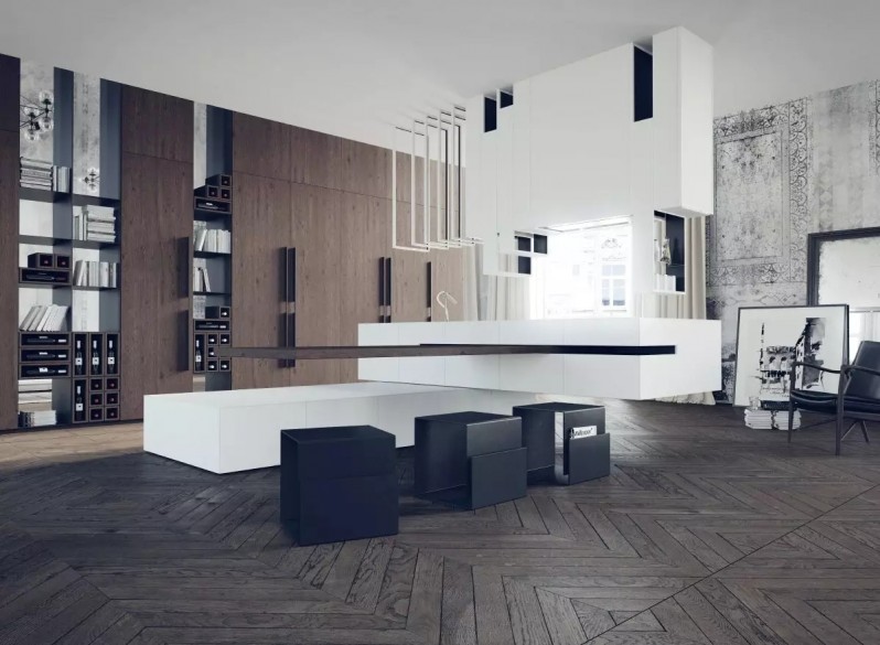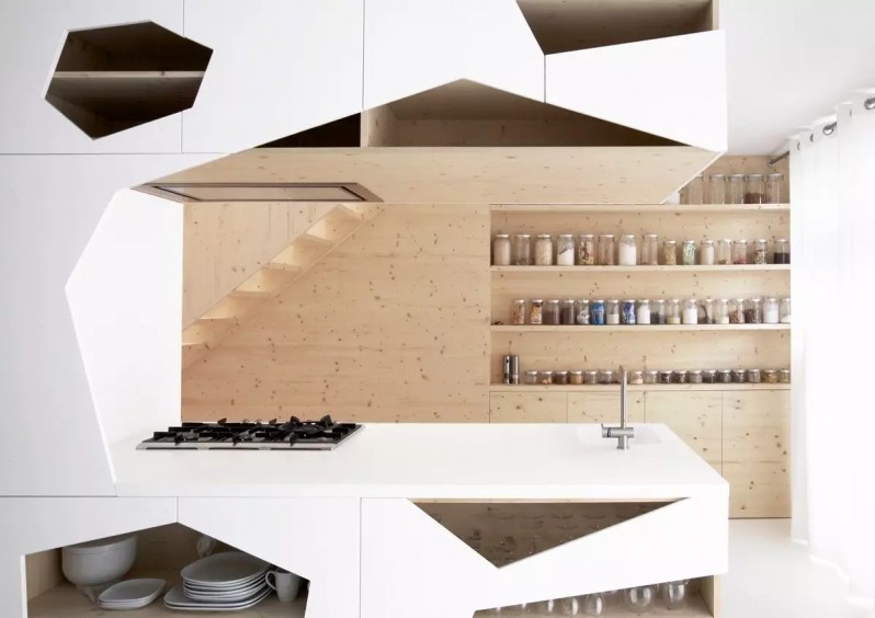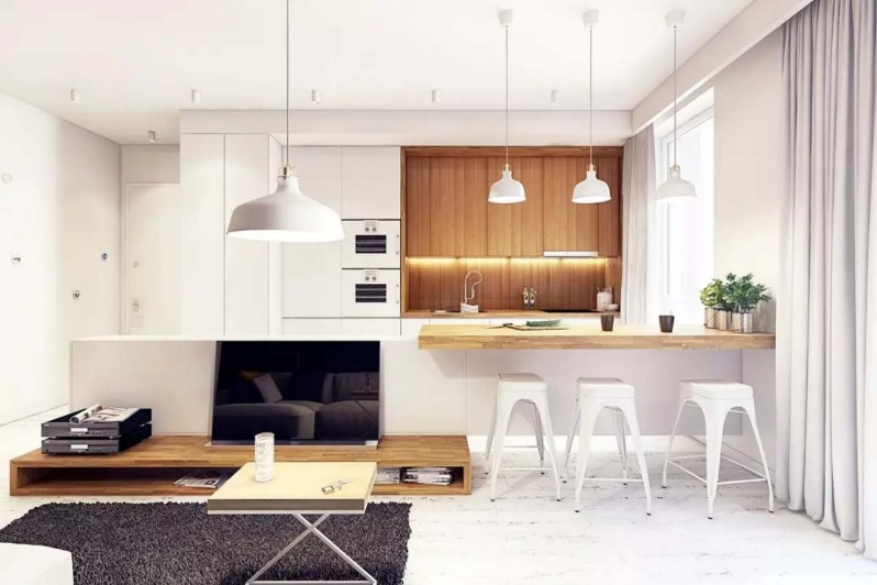 吧臺下面設(shè)置收納,新穎、出其不意。