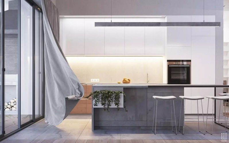 高級灰廚房,自帶德式櫥柜的嚴(yán)謹(jǐn)做派,對門板構(gòu)造及線條的出其不意設(shè)計,讓人眼前一亮。