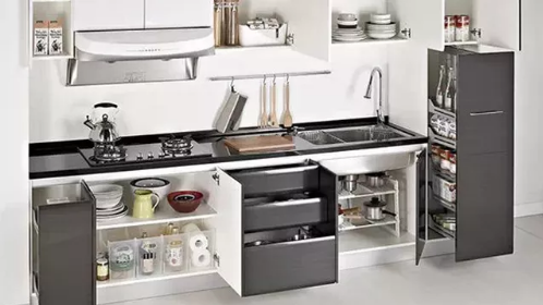 廚房的電器是越來越多,櫥柜可以考慮做到剛好就行,考慮下電器平臺,給微波爐,電飯煲,煲湯的,果汁機(jī),烤箱機(jī)等都放進(jìn)里面,同時根據(jù)廚房收藏功能的不同,櫥柜設(shè)計要求分設(shè)柜體、拉籃、抽屜。其中拉藍(lán)靠近灶臺位置,存放做飯用的調(diào)料、刀、勺等,方便做飯時隨時取用。同時,在廚房墻面設(shè)置足夠掛桿,方便掛放廚房吊掛件,小刀具,或者其他零星物品,這樣看起來才整齊,儲物功能非常強(qiáng)大。廚房櫥柜柜門和抽屜如果想要人性化服務(wù),就建議考慮帶阻尼設(shè)計,柜門開合更安靜。