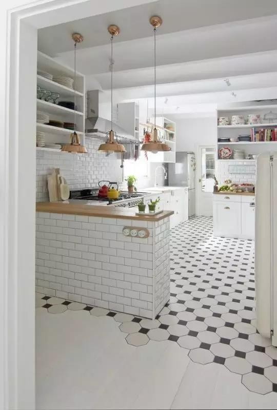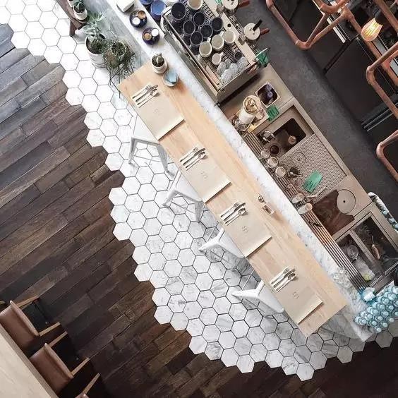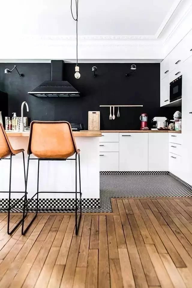 比如廚房和餐廳就是最適合用瓷磚和地板拼接的區(qū)域,廚房多油煙,不適合鋪木地板,比較難以清理,鋪瓷磚就方便很多,瓷磚的油污相對(duì)來(lái)說(shuō)就很容易清理了。