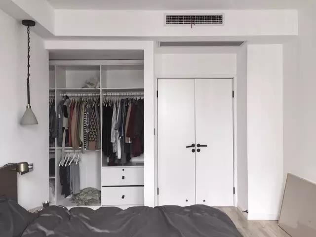 臥室里某一面墻較大的,可以把它利用起來裝成一整面的衣帽間,甚至可以通過開放式的掛鉤等形式,來實(shí)現(xiàn)自己夢寐以求的衣帽間小夢想。