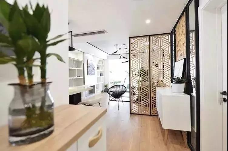 最直接的方式便是在玄關(guān)豎一道鏤空的墻,稍微做一些造型美化,若隱若現(xiàn),美觀的同時不影響屋內(nèi)采光。