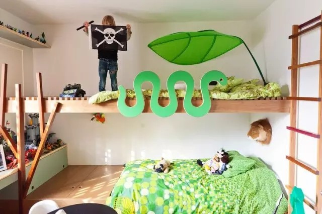 ▲ 房間用綠色單品做點綴,兒童房也可以生機(jī)勃勃。