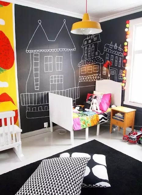▲黑板墻,讓孩子的童真童趣發(fā)揮到極致。