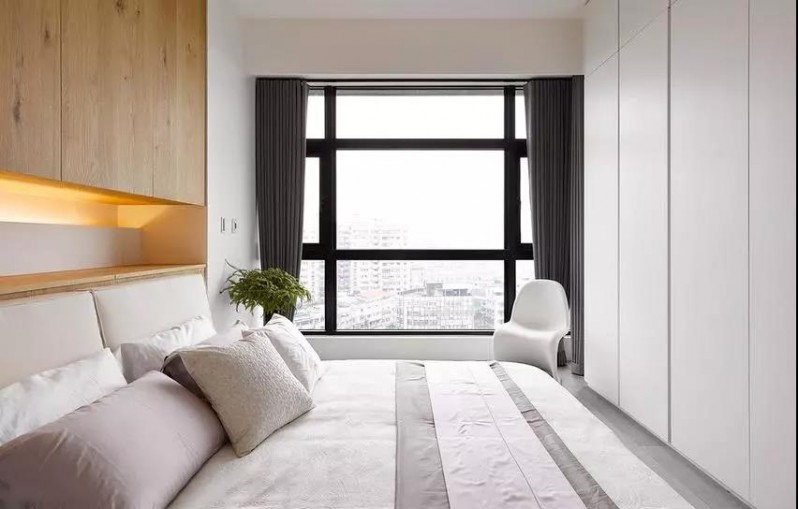 簡(jiǎn)單到只有基礎(chǔ)功能的臥室,純白的色彩下原木色的床頭,忠實(shí)的描述著北歐氣質(zhì)。