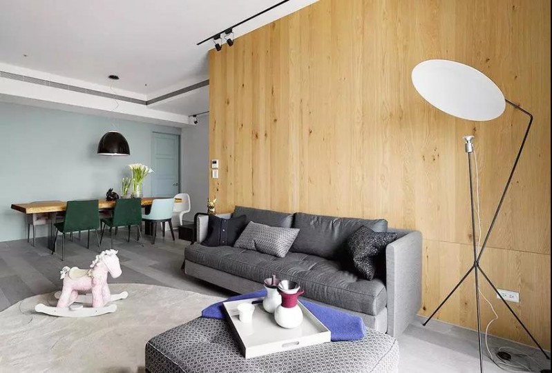 整面原木的沙發(fā)墻,貢獻(xiàn)了更搞的室內(nèi)亮度,也為空間增添了不少自然的感覺(jué)。