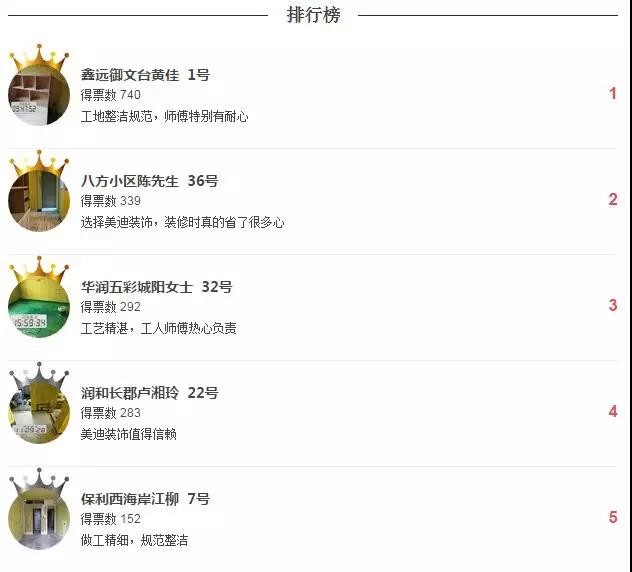 那么,截止29日15點(diǎn)前五名人氣工地分別是: