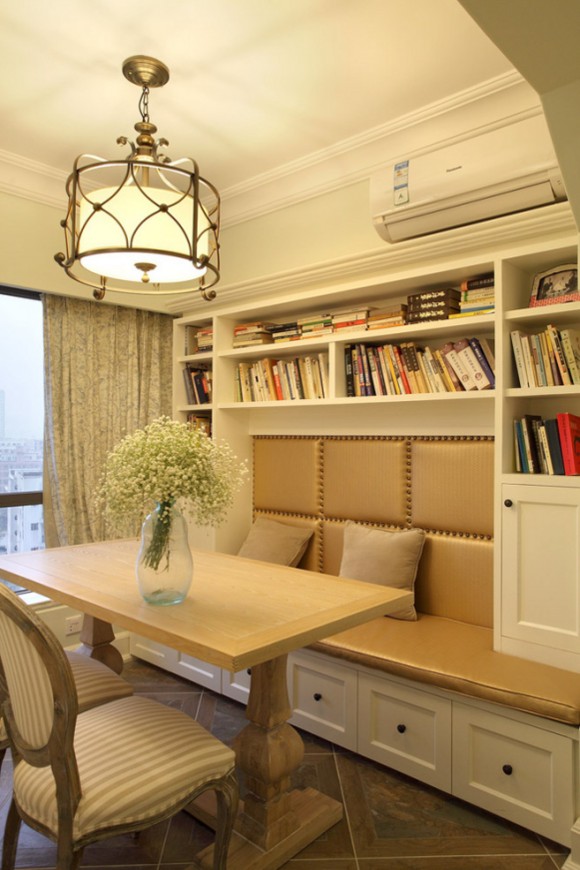 組合式書柜可以給書房空間帶來不少的活動空間,給人落落大方、干凈利落的感覺,簡潔的風格會令你心境和思緒都更輕快些;同時編輯個人不怎么喜歡柜門,因為拿書不方便,像多寶格和開放式書柜這樣的設(shè)計,都會為讀寫環(huán)境提供更多的便利和保障。