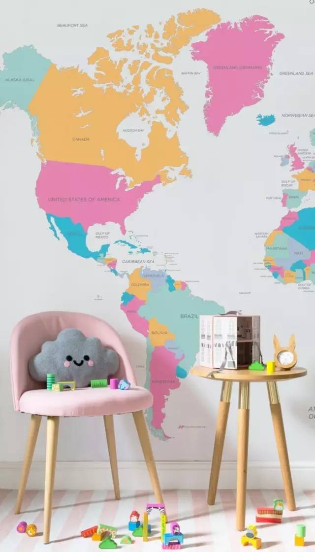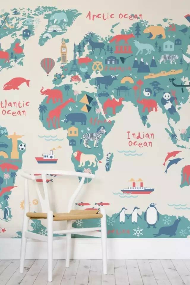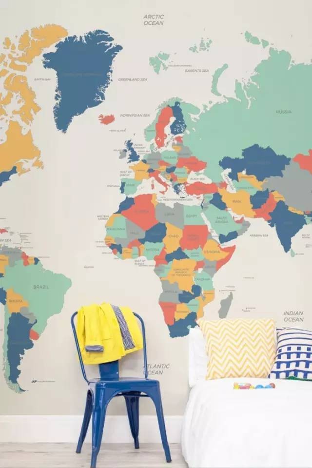 世界地圖的壁紙,最適合放在孩子房間了,有趣的圖案有助于激發(fā)孩子的學習欲望。
