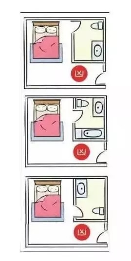 廁所門不要直接對(duì)著床,強(qiáng)風(fēng)倒灌的時(shí)候,濕氣晦氣都會(huì)吹到床那邊,影響主人的健康。