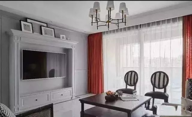 上圖窗簾完全就是跳躍搭配,和空間任意顏色沒有關(guān)系,就是為了打破大面積沉悶感,在全是以黑白灰為主色調(diào)的空間內(nèi),橘紅色跳躍出其不意。