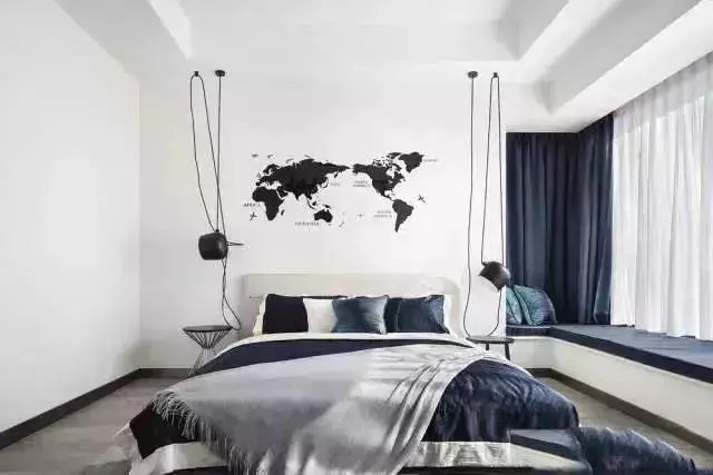 這個搭配一看就知道是很明顯就是呼應(yīng)了,窗簾的深藍(lán)色與床品呼應(yīng),效果就好多了。所以如果要好看,現(xiàn)實(shí)生活中,最好床品和窗簾做相應(yīng)的呼應(yīng),這樣永遠(yuǎn)都不會出錯