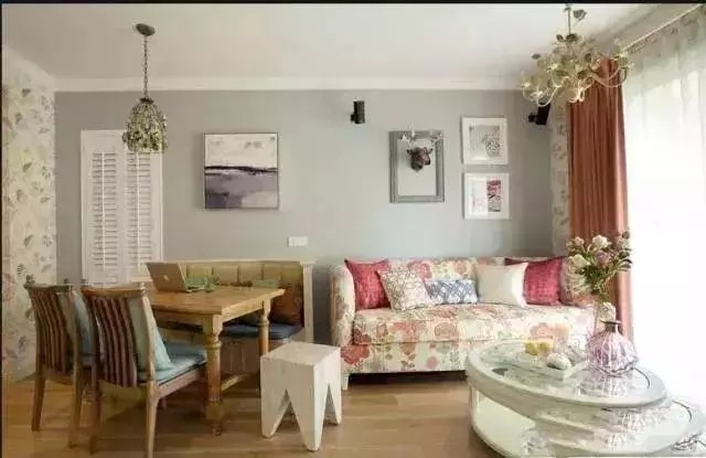 田園裝修,窗簾與沙發(fā)碎花以及卡座抱枕呼應(yīng),這個風(fēng)格的選擇要非常慎重