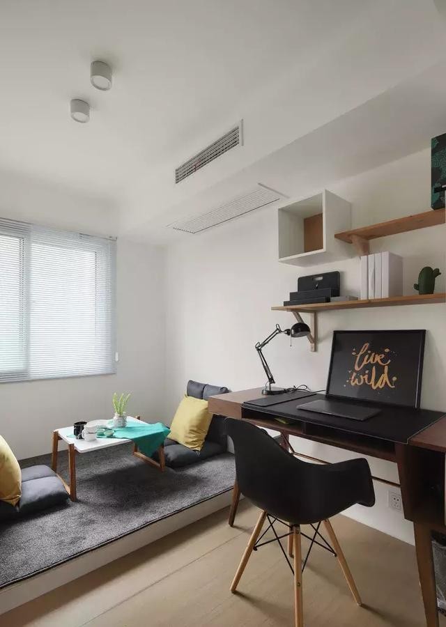 ▲書(shū)房打造了一個(gè)低矮的榻榻米,平常可以在這里喝茶聊天,工作忙碌時(shí)也可以在家加班。
