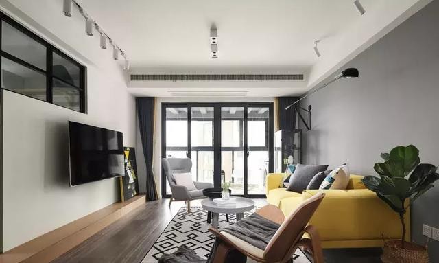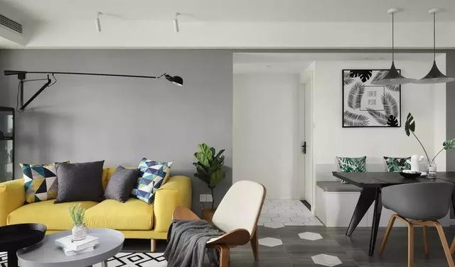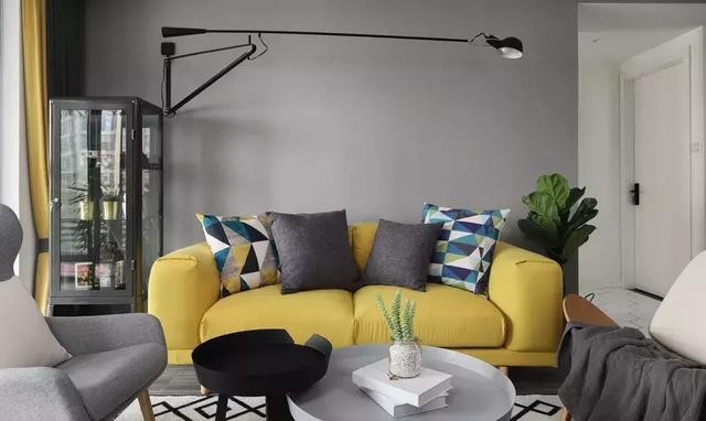 ▲客廳是設(shè)計(jì)最棒的地方,用白色和灰色來(lái)打底,再搭配亮黃色的布藝沙發(fā),太溫馨。