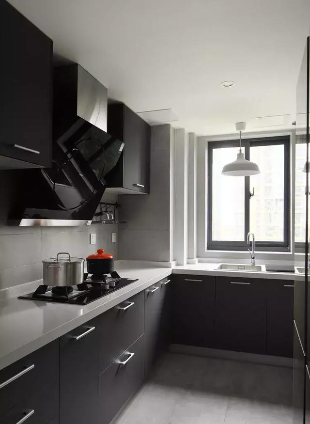 ▲廚房洗菜、烹飪、切配區(qū)布局非常贊,忙起來(lái)也不會(huì)覺(jué)得擁擠。配色也特別耐看。