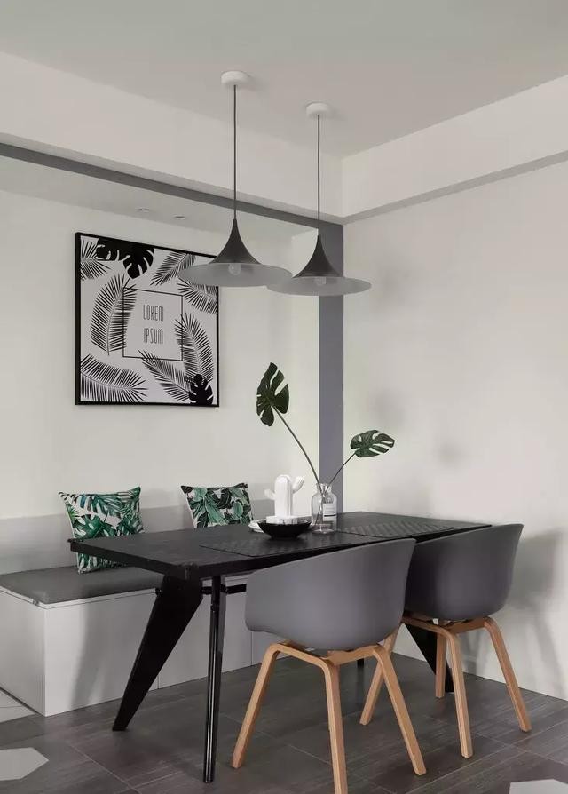 ▲簡(jiǎn)約的小餐廳,黑白灰搭配得超大氣。卡座設(shè)計(jì)+北歐風(fēng)裝飾畫(huà),格外清新。