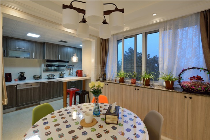 廚房應(yīng)給人整潔、干凈的感覺。廚房墻面宜選用白、灰色瓷磚,更有利于清潔,地面宜選用耐污染力強(qiáng)的色彩。廚房的頂部宜選用淺灰色、淺黃。