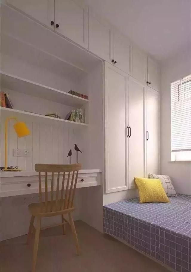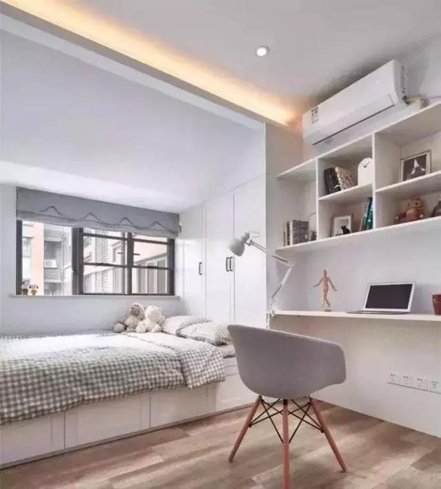 看上面這個(gè)設(shè)計(jì),后面連接一個(gè)柜子,這樣的話連臥室里專門放衣柜的空間都節(jié)省出來了,而且看著絲毫都不別扭。早上起床挑衣服也是非常之方便了。