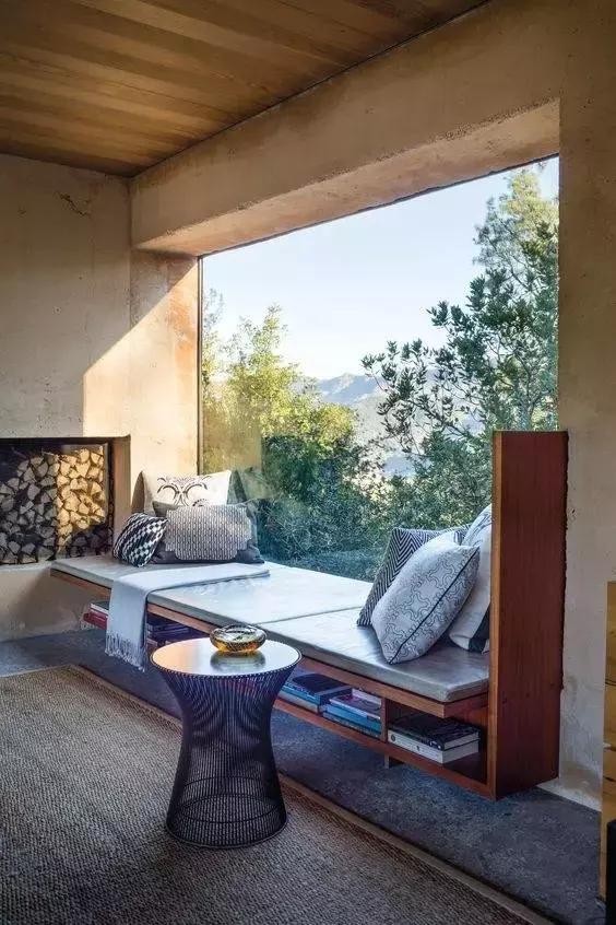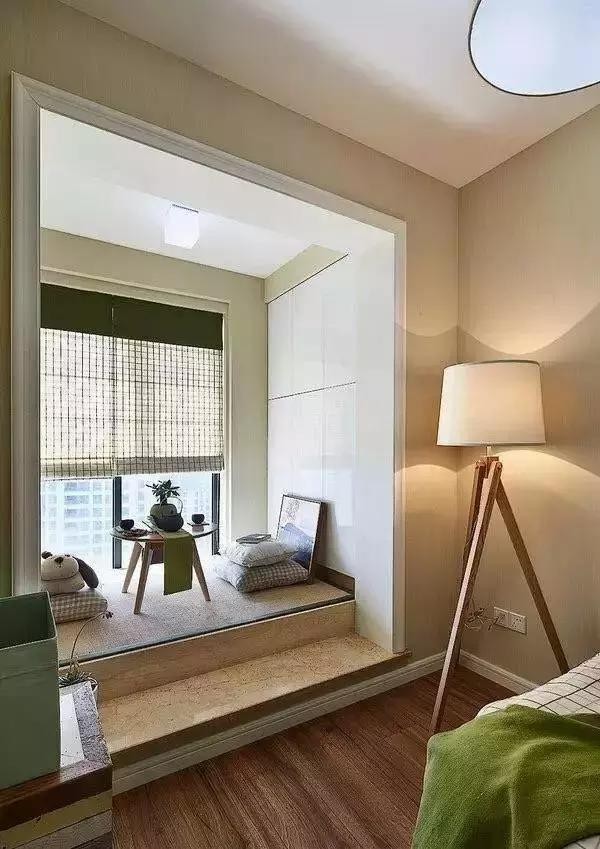 這種下午茶式的榻榻米休息區(qū),就是文藝本身了。不論是小別墅還是高樓里,這樣在飄窗上不論干什么都很愜意的好嗎!