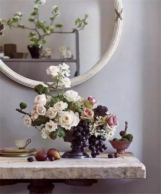 室內(nèi)布置花藝除了有常見的落地布置之外,也可以與家具、陳設(shè)、燈具等物品進(jìn)行結(jié)合,形成相互呼應(yīng)的搭配整體。