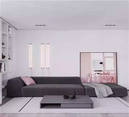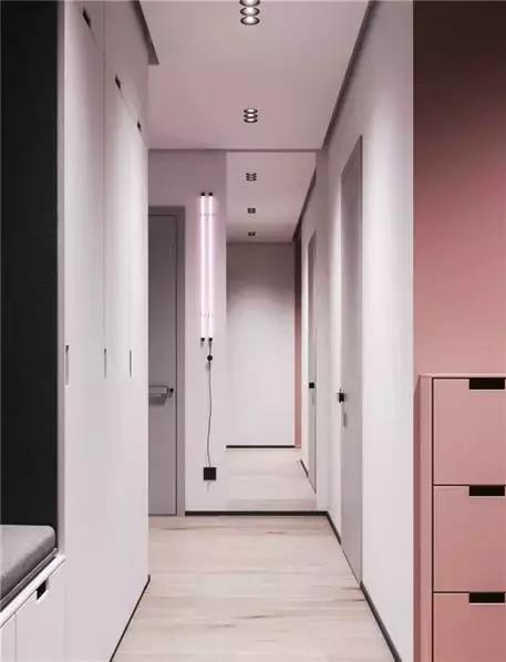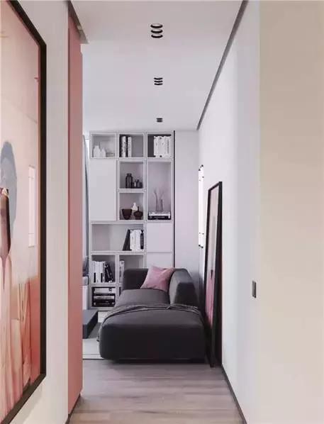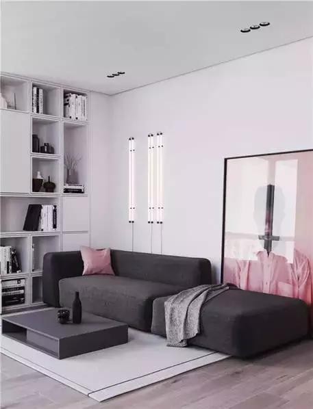 在運用極簡風(fēng)格中的黑白灰基礎(chǔ)上,加入了甜美的粉色起到中和作用,給原本略顯單調(diào)的空間增加了活力與熱情。