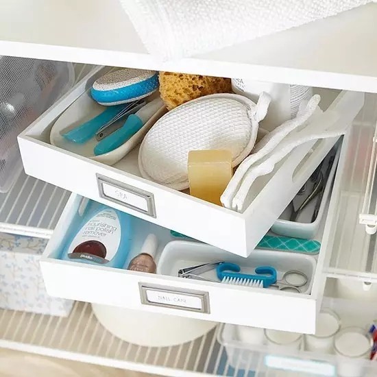 用上收納箱后,物品就能更好分類,不僅取用更省事,而且物品還能疊放起來,所有的洗浴品、化妝品統(tǒng)統(tǒng)都能裝得下。