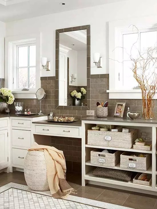 洗漱臺(tái)柜子通常都有輸水管道,雖然容量有限,但只要用心收拾,收納空間也能提升好幾倍。