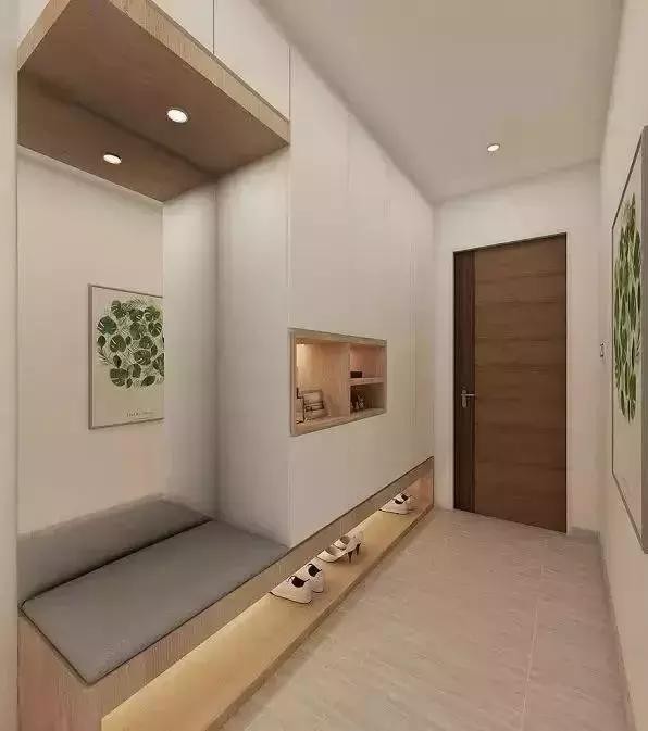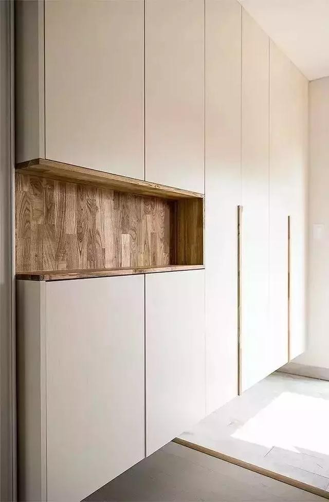 這種無(wú)把手式的柜子,當(dāng)然不僅局限在臥室或者客廳大面積的立墻柜,同樣適用于放置在門(mén)口的鞋柜或收納柜,放置一些刷子擦鞋布之類(lèi)雜七雜八的東西。