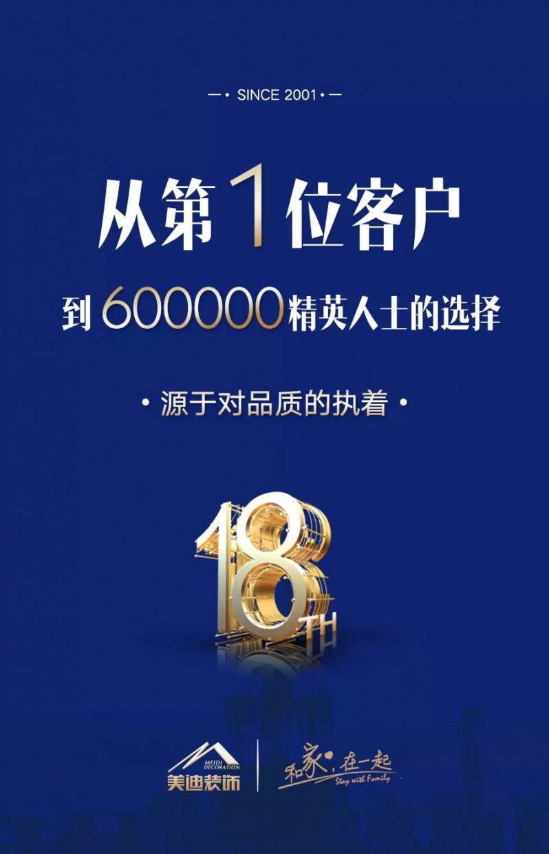 18年間,有第二套、第三套房依舊選擇美迪、有祖孫三代三套房均交給美迪、有推薦身邊的親人朋友都來(lái)美迪裝修的業(yè)主,著名旅美油畫(huà)家李自健、湖南衛(wèi)視主持人魏哲浩等均選擇了美迪。美迪以優(yōu)秀的設(shè)計(jì)實(shí)力、過(guò)硬的施工質(zhì)量和優(yōu)質(zhì)貼心的服務(wù),18年零投訴零舉報(bào)誠(chéng)信經(jīng)營(yíng)收獲超600000精英人士的信任。