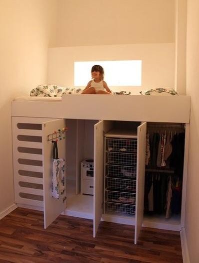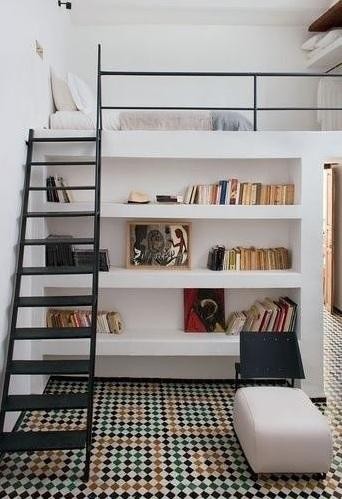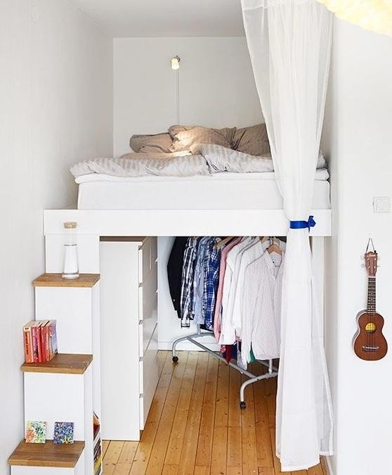 有沒有覺得眼前一亮?床下可以藏衣柜、樓梯、儲(chǔ)物柜等等,簡直就像一個(gè)大倉鼠。這樣的設(shè)計(jì)一下就在無形之中,擴(kuò)大了室內(nèi)的可用空間。