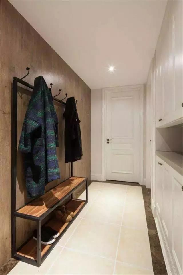 玄關(guān)面積較小就應(yīng)遵循實用原則來布局,將下方區(qū)域設(shè)計為換鞋凳及鞋柜,中間的墻面區(qū)域則可以充分利用掛衣鉤功能,回家后立馬就能脫下厚重的外套、帽子、圍巾,換身舒適的裝備了。