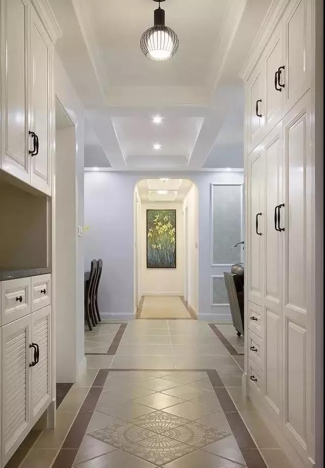 通道式玄關(guān)都是偏狹長的,可以放置鞋柜、收納柜等延展空間,增強玄關(guān)實用性,入戶空間看起來清爽又利落。