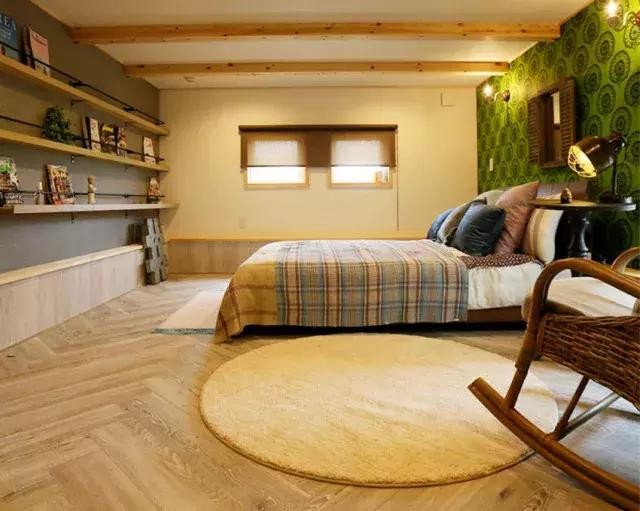日式的雜貨鋪風(fēng)格最主要的特點(diǎn)就是原木的大肆運(yùn)用,柜子、餐桌、床、地板等,目光所及之處幾乎都是原木,這套70平公寓的空間布置就很好的詮釋了這一特點(diǎn)。