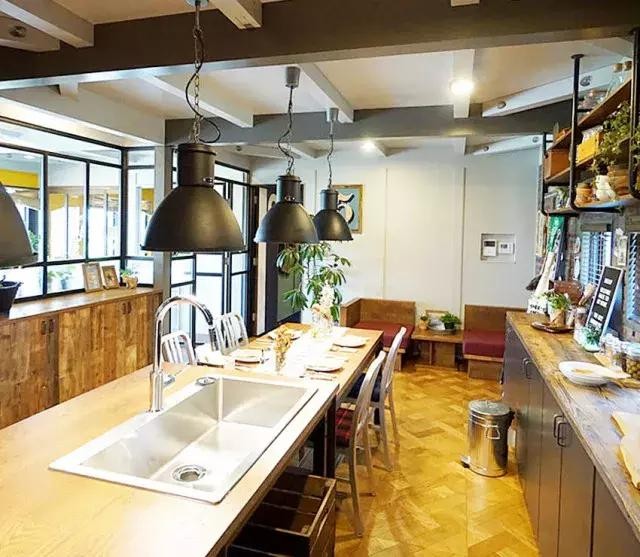 依循整體風(fēng)格,選用大量的木作家具定調(diào)空間,天花則依循橫梁選用特色吊燈,舉目所見如客廳、廚房、餐廳皆有條理的規(guī)劃。