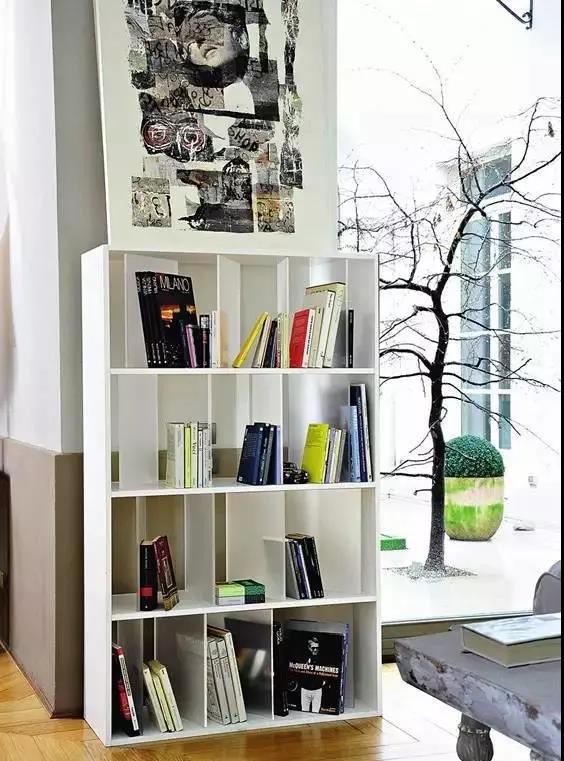 ▲這種化繁為簡(jiǎn)的書架,讓小空間在視覺上有別樣的拓展感。選幾樣極具設(shè)計(jì)感的裝飾品擺放,會(huì)讓這個(gè)小小的閱讀區(qū)更加靈動(dòng)。