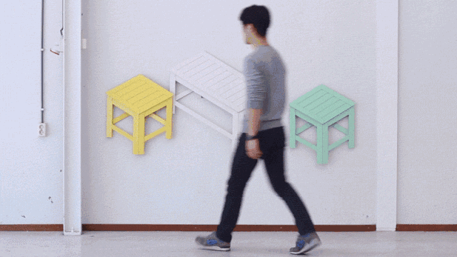 在寸金寸土的今天,為買房痛過,選擇小戶型后,還要為家具占用過多空間而深度煩惱。面對這一問題,設(shè)計師Jongha Choi推出了系列家具De-Dimension,將凳子折成平面直接掛在墻壁上,完美地節(jié)省家居空間。