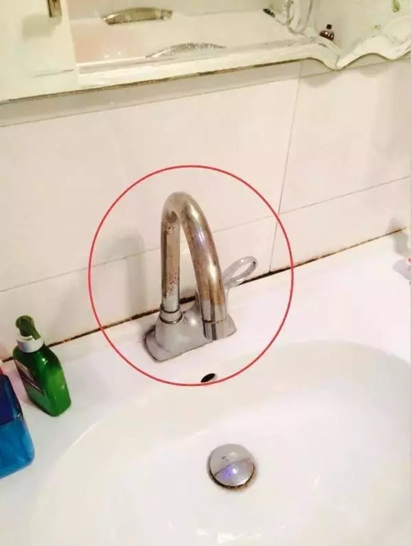 2、家里廚房、衛(wèi)生間、陽(yáng)臺(tái)只要有用到熱水的水龍頭,一定不能貪便宜,水龍頭一定要買銅質(zhì)的,不然沒(méi)用多久就會(huì)像下圖一樣脫落表層,一旦生銹就不好看了。