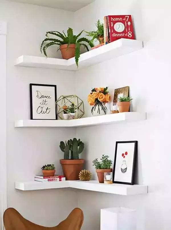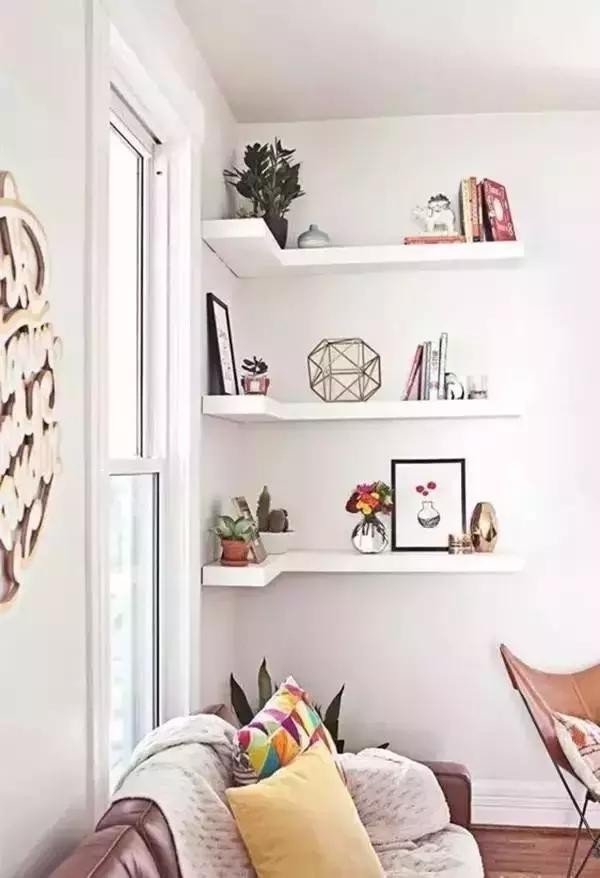 利用墻角打造一個書架,既節(jié)約了空間,也增添了家里的藝術氣息。
