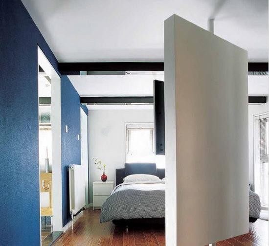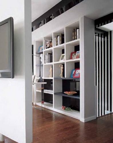 空間小并不代表不精彩,一道轉(zhuǎn)墻的設(shè)計成為二層空間最大的亮點。分隔書房與臥室空間的是兩道半墻,其中一道可以自如旋轉(zhuǎn),關(guān)閉時,兩個空間各自獨立,看電視的與看書的各不影響;而打開時,兩個空間相互貫通,隔離而不疏離。