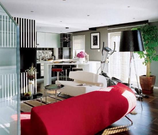 造型獨特的紅色沙發(fā),活躍了空間氣氛,讓空間不再單一,呈現(xiàn)外向歡快的一面。