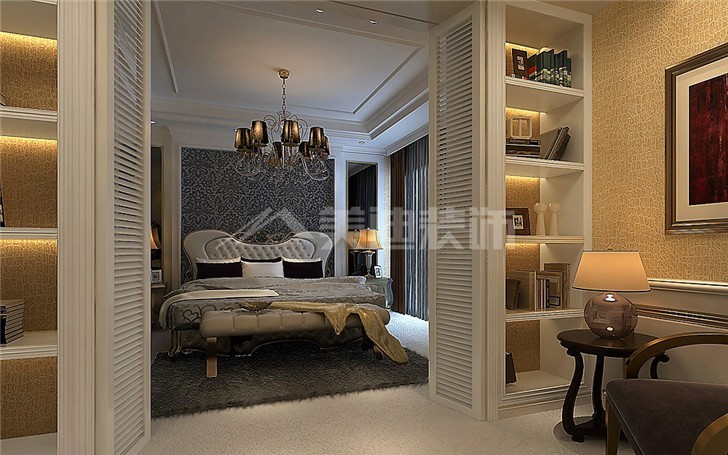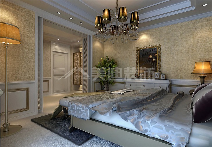 美式新古典講究用精致的細(xì)節(jié)來營造舒適無比的空間。主臥是整個空間的亮點(diǎn),開闊的空間讓設(shè)計師有了無限的發(fā)揮余地。材質(zhì)運(yùn)用精細(xì),造型也具有代表性,色彩則同客廳保持同一色系,整體風(fēng)格渙然天成,華貴又不張揚(yáng)。在床品的選擇上,設(shè)計師大膽選用了華麗的緞面布藝,不但色澤明亮,而且質(zhì)感一流。